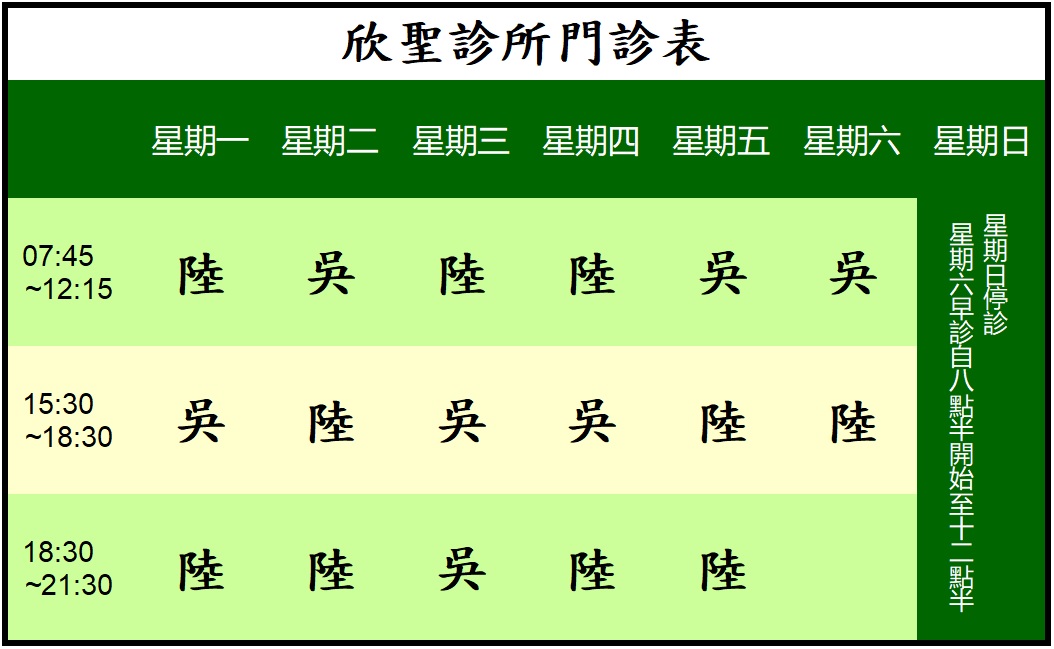 星期一 - 星期五: 8:00 - 12:00 , 15:30- 21:10